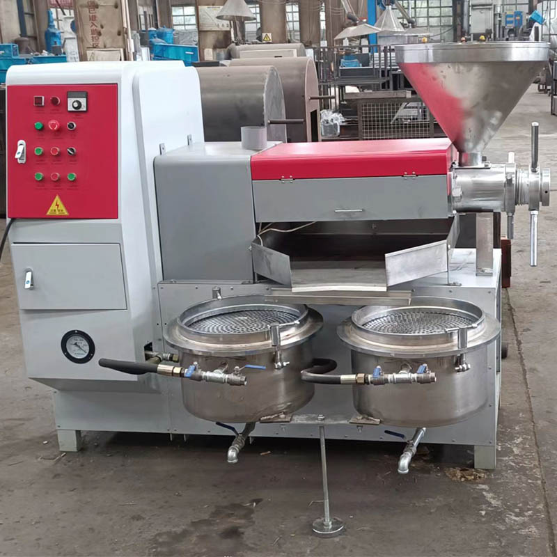 動(dòng)力經(jīng)減速后傳給主軸裝在主軸上的榨螺隨著旋轉(zhuǎn)。將榨紋間的油料不斷地向前推進(jìn),由于榨膛與榨螺間的空間逐漸縮小,油料的密度增加,因而壓力逐漸增大。在壓榨過(guò)程中,油料顆粒之間,油料與零件之間發(fā)生摩擦,產(chǎn)生了熱量。這樣就構(gòu)成榨油工藝的壓力、熱量量大要素,破壞油料組織細(xì)胞,油從油線中溢出,餅則從餅頭與出料口間被推出。當(dāng)溢出的油通過(guò)油盤(pán)流入濾油桶上面時(shí),真空泵把桶內(nèi)的空氣抽出,桶內(nèi)形成負(fù)壓,油通過(guò)濾布,被抽進(jìn)桶內(nèi),而油渣被隔離在濾布上面,這時(shí)得到的是純凈的油液。